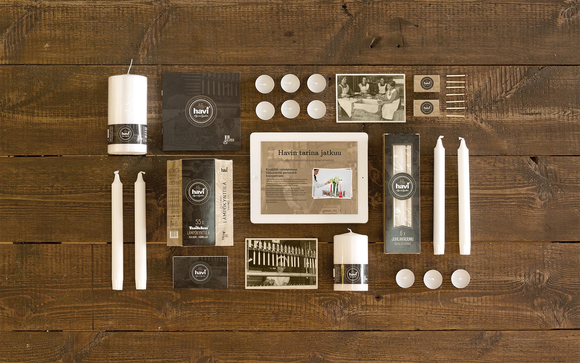 Havin kynttilöiden juhlavuoden malliston pakkauksien sekä mainos- ja markkinointimateriaalien suunnittelu.