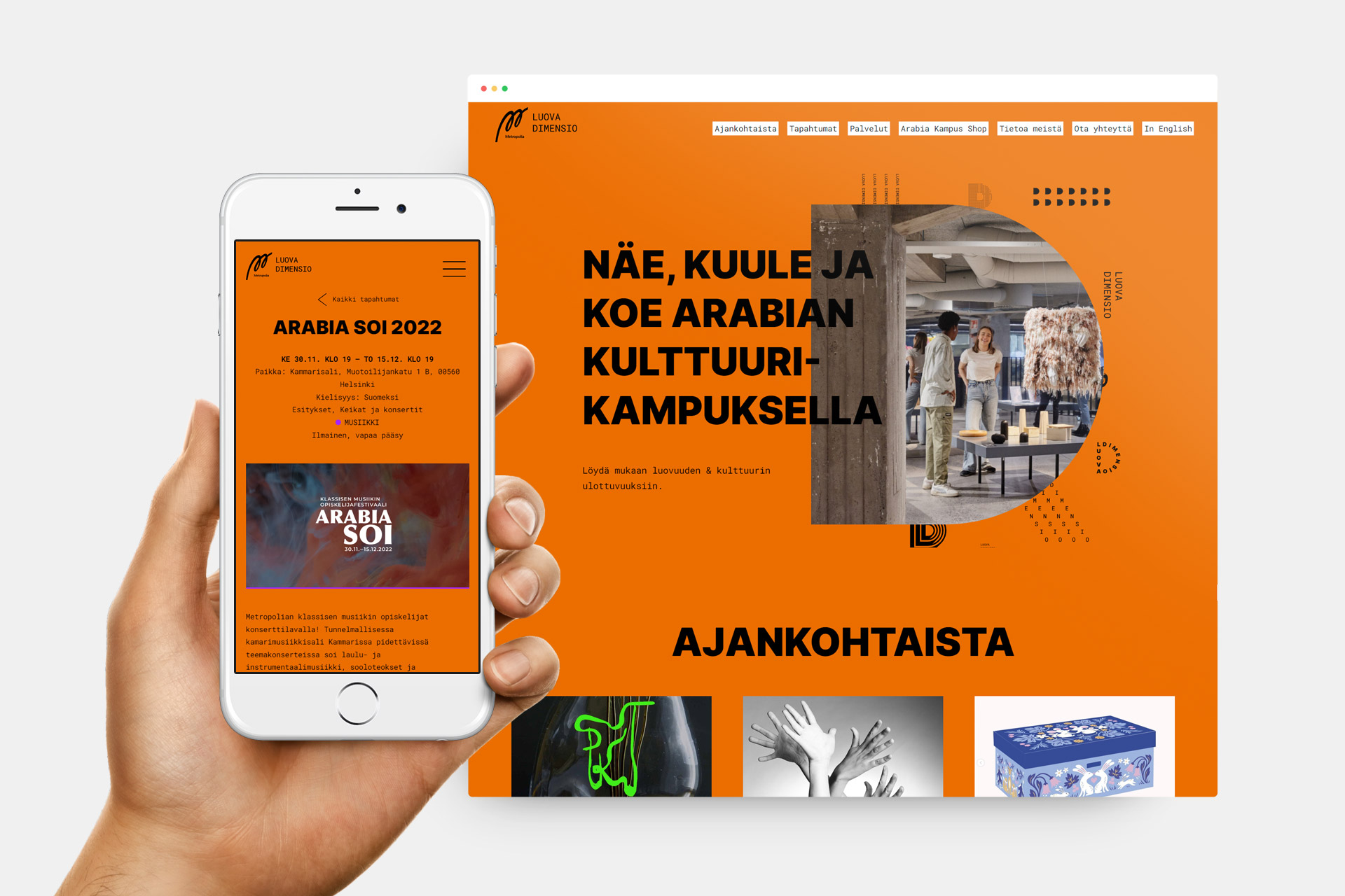 Metropolian Arabian kampuksen Luovan Dimensio visuaalisen ilmeen ja verkkosivuston suunnittelu.