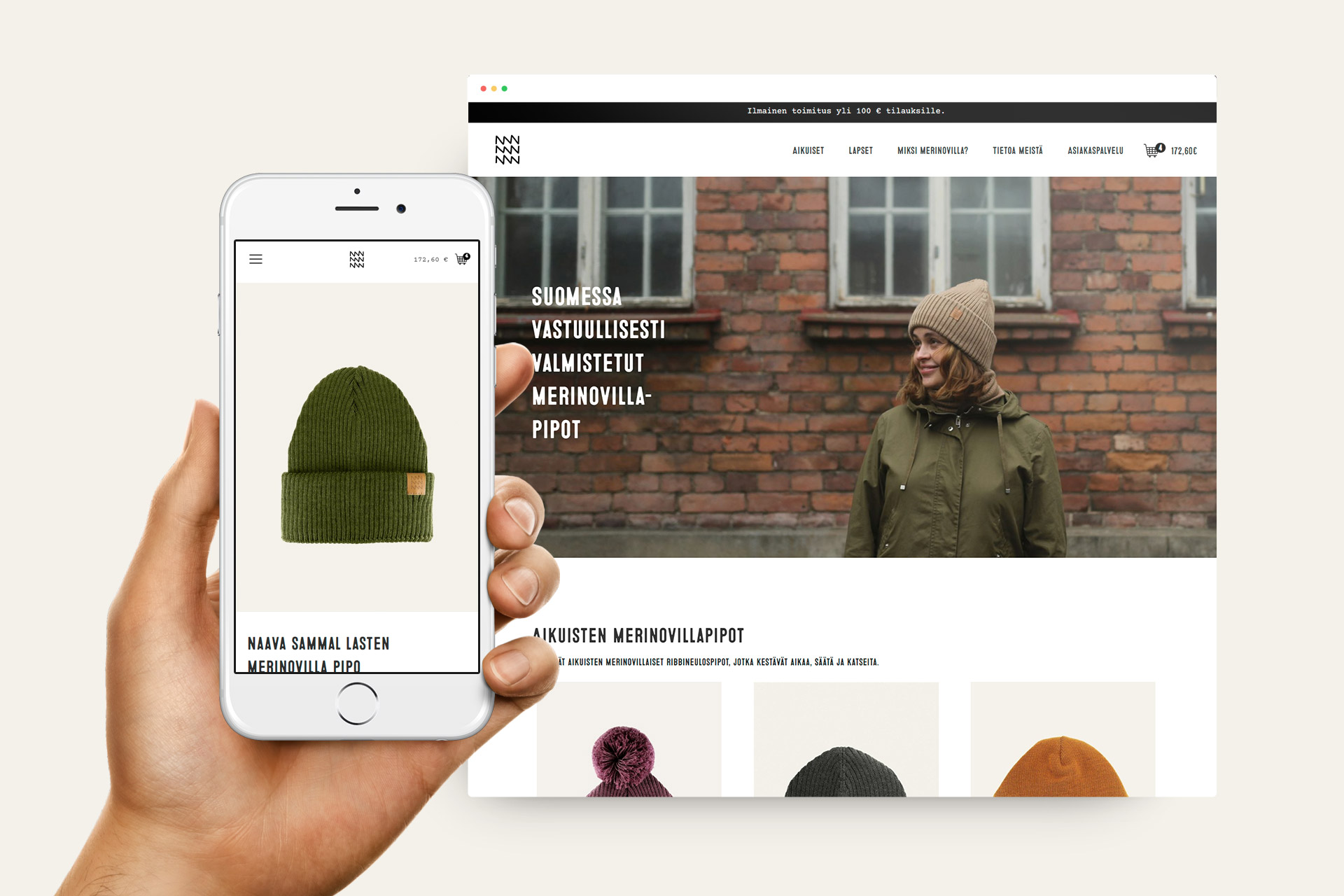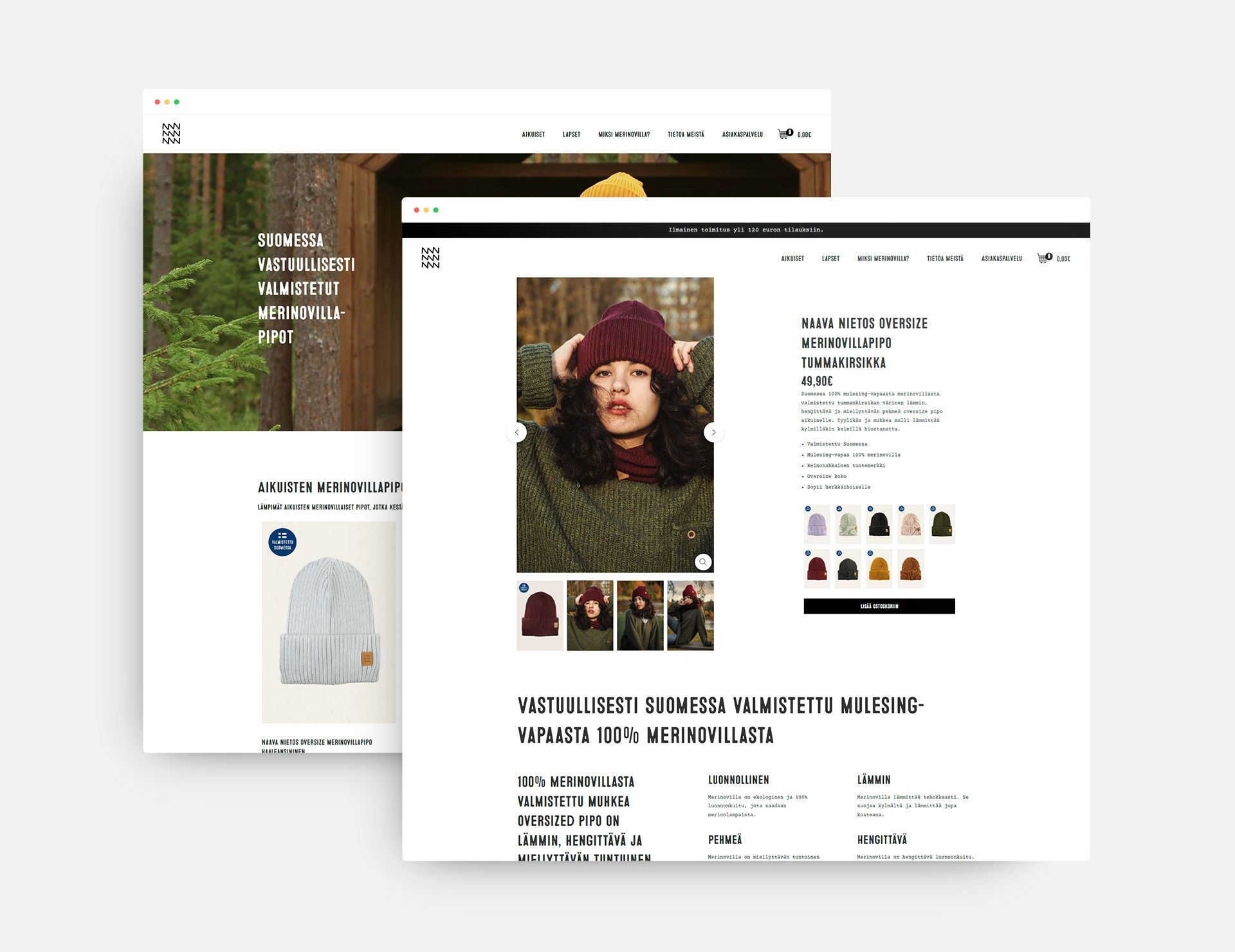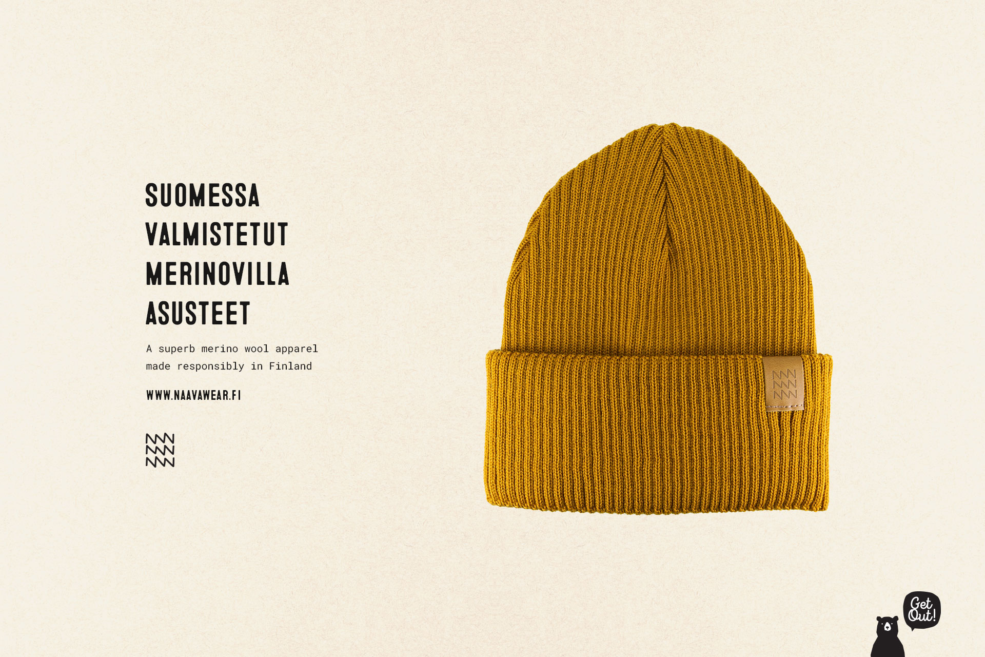Kotimaisen Naava Wear merinovilla-asuste brändin visuaalisen ilmeen suunnittelu. Kotimaiset merinovilla-asusteet: naavawear.fi