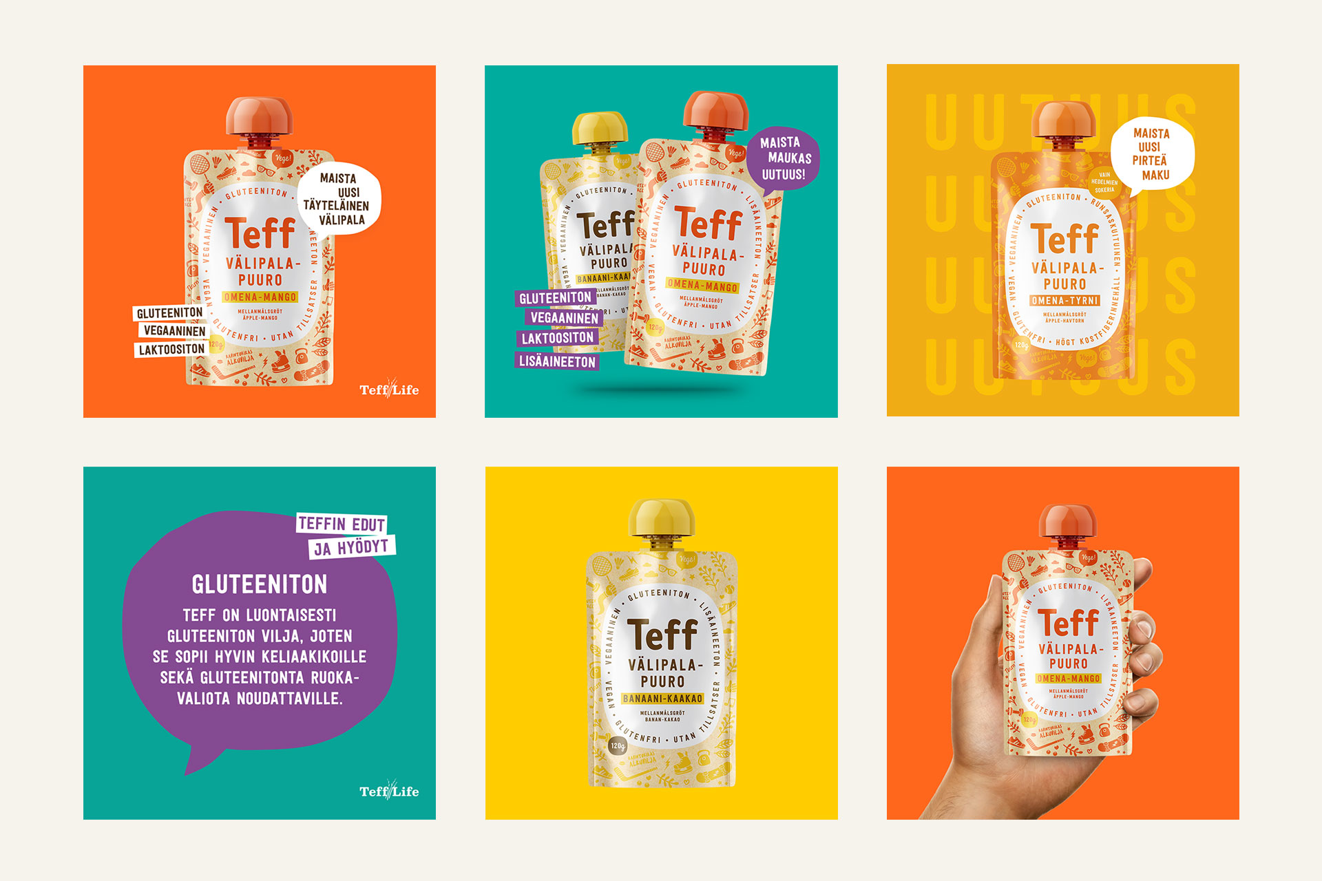 Elintarvikealalla toimivan Teff Lifen tuotebrändien suunnittelu 2021 ->. Tutustu gluteenittomiin teff tuotteisiin www.teff.fi